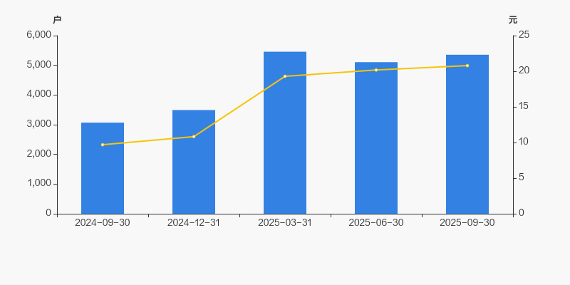 截至2025年9月30日,公司最新总股本为1.34亿股,其中流通股本为6326.28万股。户均持有流通股数量由上期的1.24万股下降至1.18万股,户均流通市值24.82万元。