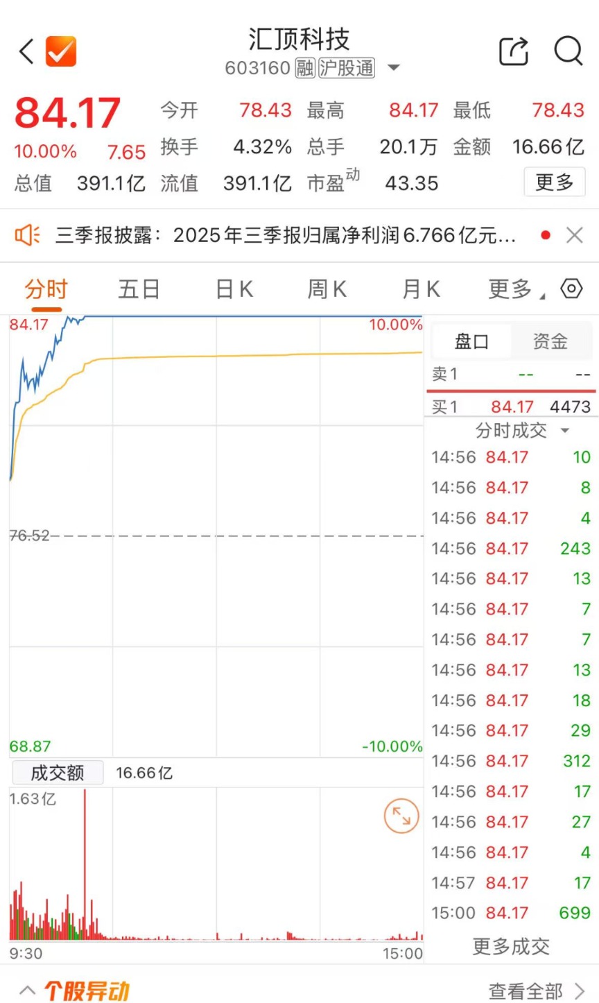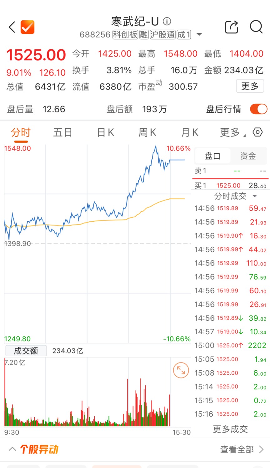 此前,寒武纪公告,2025年前三季度,公司实现营业收入46.07亿元,同比增长2386.38%;净利润16.05亿元,上年同期为亏损。其中,2025年第三季度,公司实现营业收入17.27亿元,同比增长1332.52%;净利润5.67亿元。