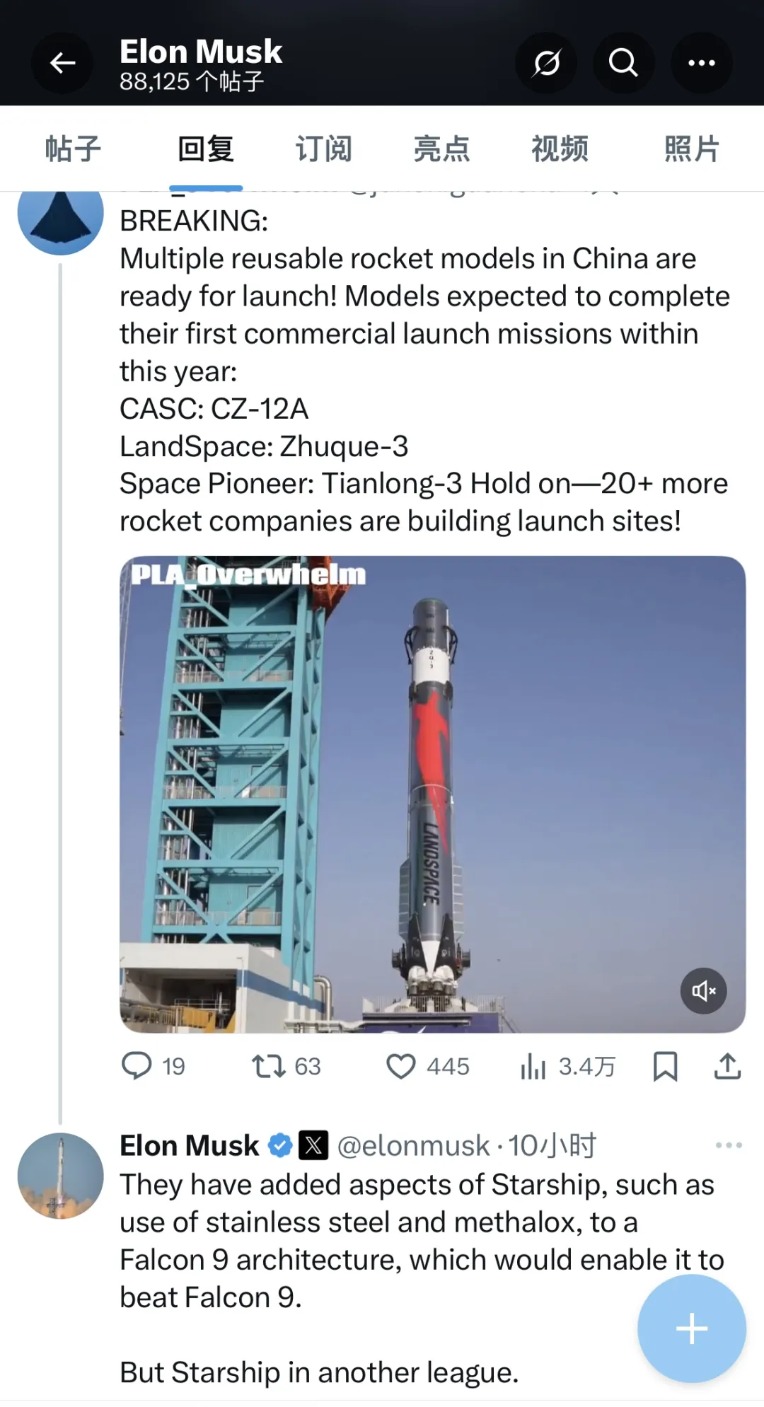 北京时间24日凌晨,马斯克在社交媒体平台上首次评论蓝箭航天即将发射的“朱雀三号”可复用运载火箭。马斯克称,中国的可复用火箭在猎鹰9号架构中加入了星舰的一些特性,例如使用不锈钢和甲烷氧化物,这将使其能够击败猎鹰9号。