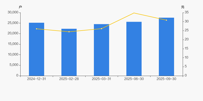 截至2025年9月30日,公司最新流通股本为2.34亿股。户均持有流通股数量由上期的9135股下降至8485股,户均流通市值26.56万元。