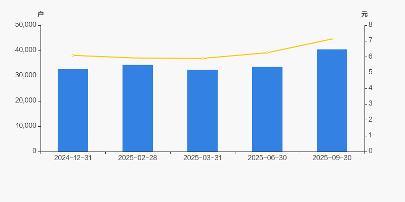截至2025年9月30日,公司最新总股本为7.2亿股,其中流通股本为6.55亿股。户均持有流通股数量由上期的1.95万股下降至1.62万股,户均流通市值11.54万元。