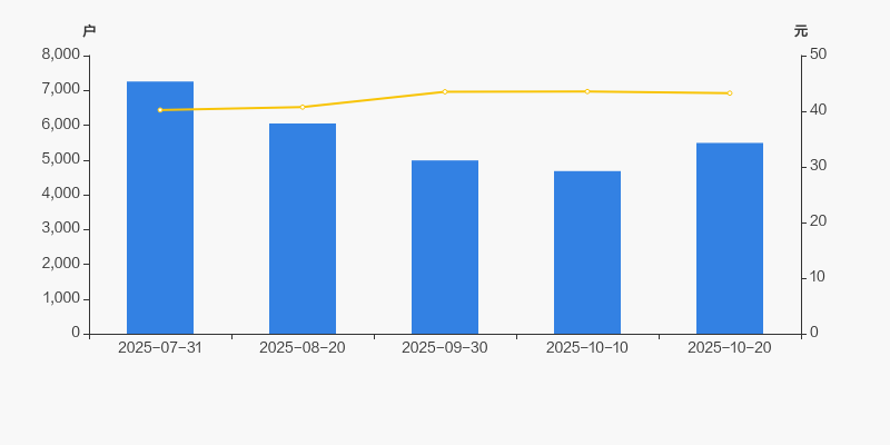 2025年7月31日至今,公司股东户数显著下降,区间跌幅为24.34%。2025年7月31日至2025年10月20日区间股价上涨7.53%。