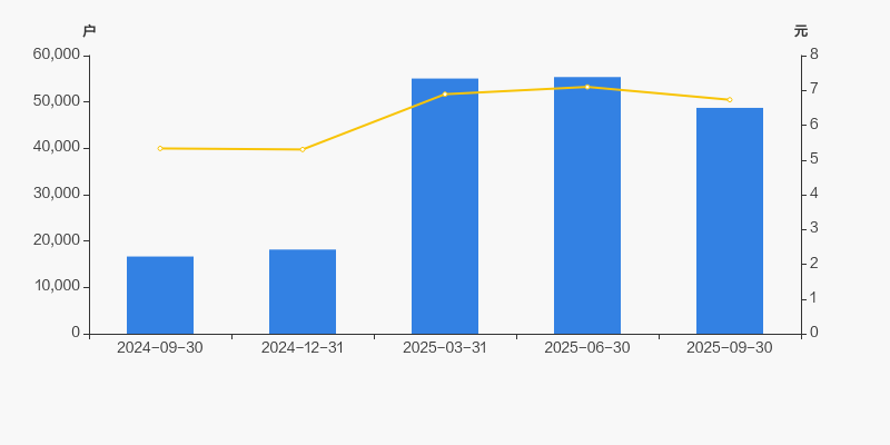 截至2025年9月30日,公司最新总股本为5.7亿股,且均为流通股。户均持有流通股数量由上期的1.03万股上升至1.17万股,户均流通市值7.87万元。