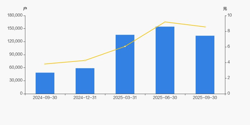 2024年9月30日至今,公司股东户数成倍增长,区间涨幅达175.07%。2024年9月30日至2025年9月30日区间股价上涨124.52%。