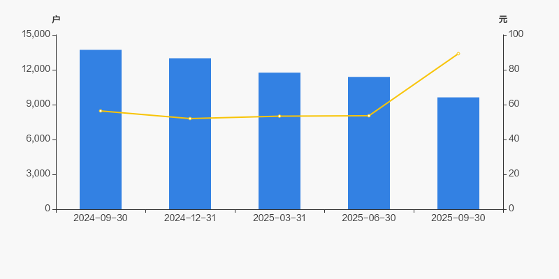 自2024年9月30日以来,公司股东户数连续4期下降,截至目前减幅为29.81%。2024年9月30日至2025年9月30日区间股价上涨58.24%。