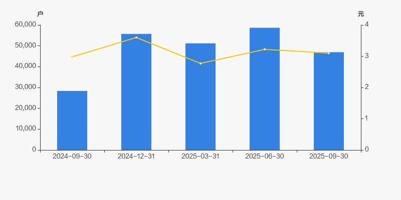 2024年9月30日至今,公司股东户数显著大幅增长,区间涨幅达65.60%。2024年9月30日至2025年9月30日区间股价上涨4.03%。