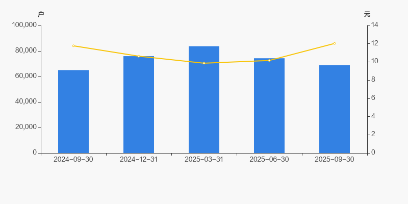 2024年9月30日至今,公司股东户数有所增长,区间涨幅为5.84%。2024年9月30日至2025年9月30日区间股价上涨2.22%。