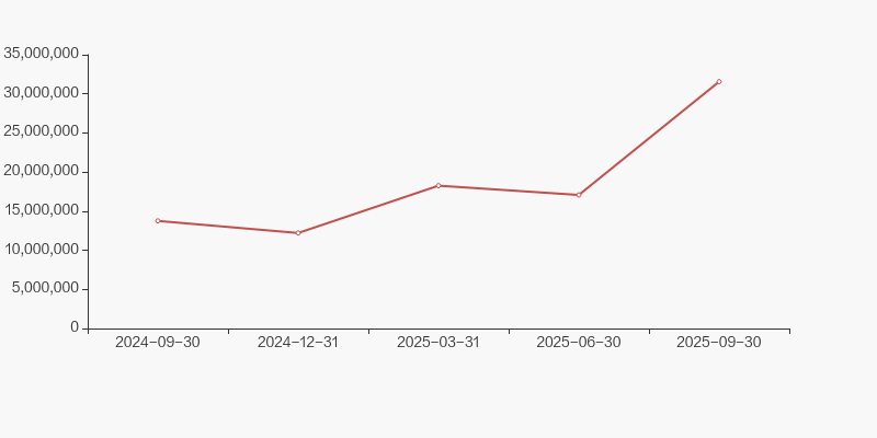 截至2025年9月30日,公司最新流通股本为13.41亿股。户均持有流通股数量由上期的1.8万股上升至1.95万股,户均流通市值23.43万元。