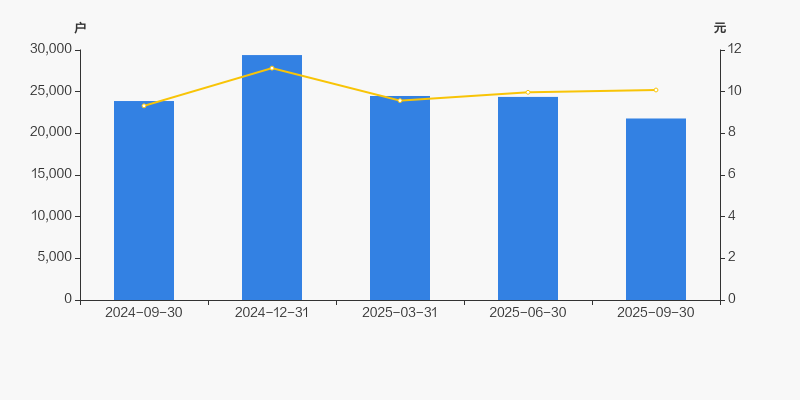 自2024年12月31日以来,公司股东户数连续3期下降,截至目前减幅为25.89%。2024年12月31日至2025年9月30日区间股价下降9.39%。
