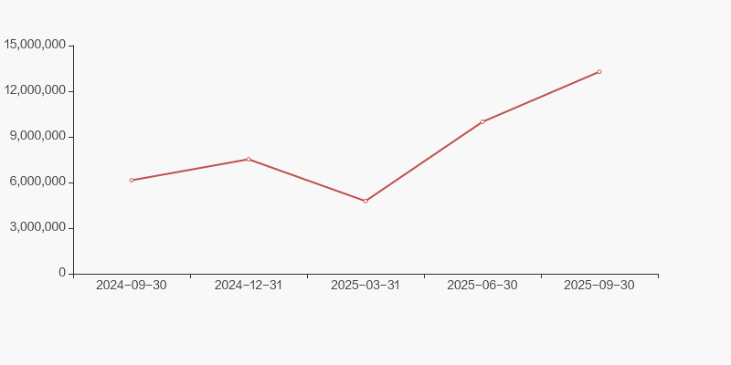 截至2025年9月30日,公司最新总股本为10.9亿股,其中流通股本为9.56亿股。户均持有流通股数量由上期的1.8万股上升至1.92万股,户均流通市值12.37万元。