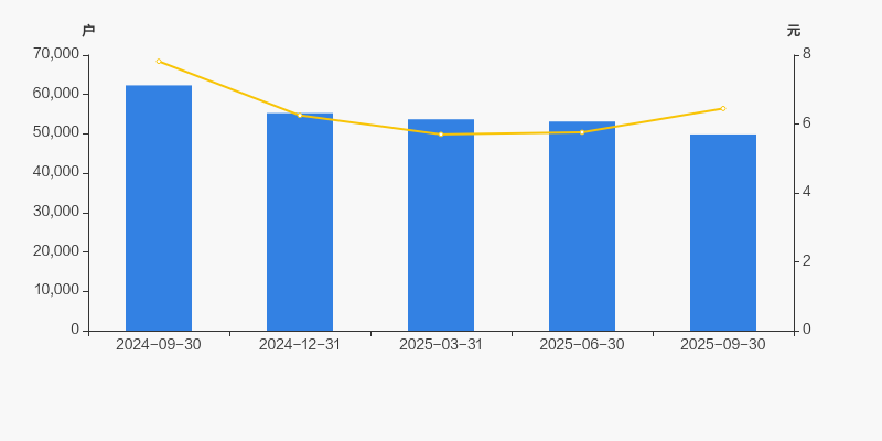 自2024年9月30日以来,公司股东户数连续4期下降,截至目前减幅为20.00%。2024年9月30日至2025年9月30日区间股价下降17.52%。