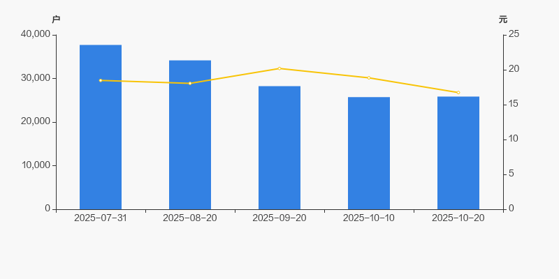 2025年7月31日至今,公司股东户数显著下降,区间跌幅为31.42%。2025年7月31日至2025年10月20日区间股价下降9.40%。