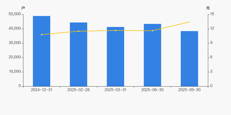 截至2025年9月30日,公司最新总股本为50.47亿股,且均为流通股。户均持有流通股数量由上期的11.63万股上升至13.16万股,户均流通市值179.2万元。