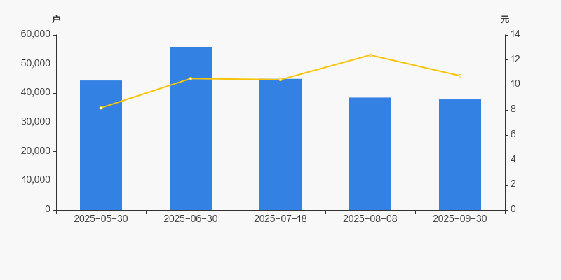 截至2025年9月30日,公司最新总股本为4.36亿股,其中流通股本为4.34亿股。户均持有流通股数量由上期的1.13万股上升至1.14万股,户均流通市值12.28万元。