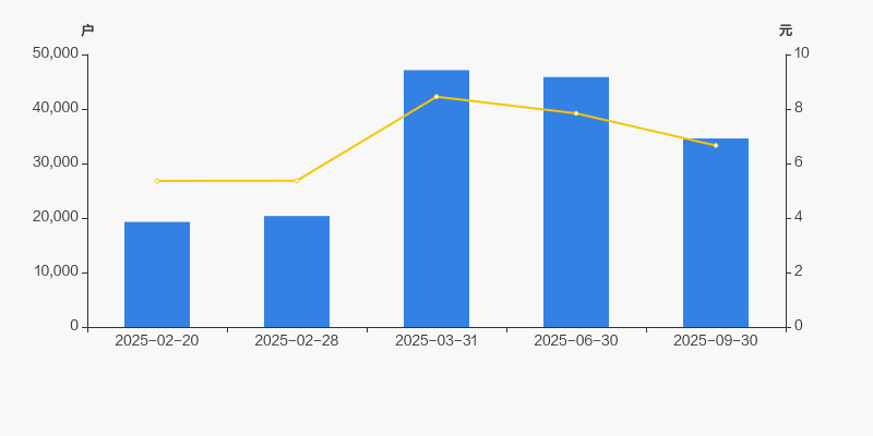 2025年2月20日至今,公司股东户数显著大幅增长,区间涨幅达79.47%。2025年2月20日至2025年9月30日区间股价上涨24.25%。