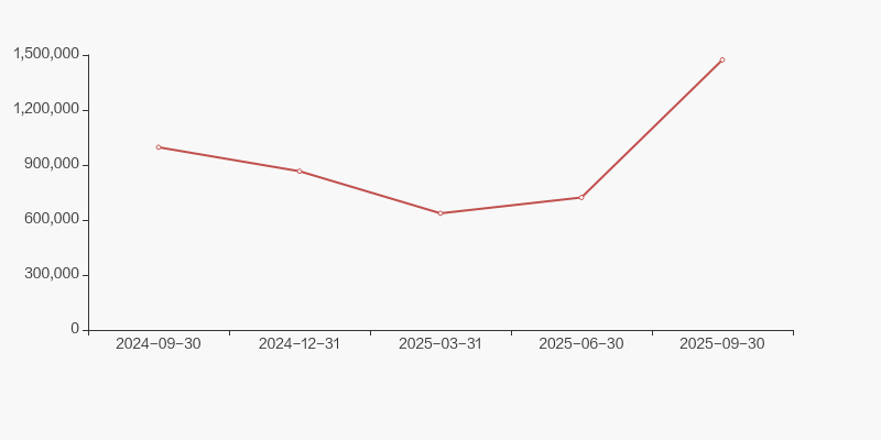 截至2025年9月30日,公司最新总股本为1.7亿股,且均为流通股。户均持有流通股数量由上期的2.21万股下降至1.64万股,户均流通市值124.82万元。