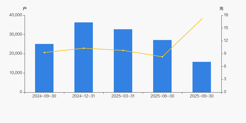 截至2025年9月30日,公司最新总股本为4.09亿股,其中流通股本为2.13亿股。户均持有流通股数量由上期的8076股上升至1.35万股,户均流通市值23.07万元。