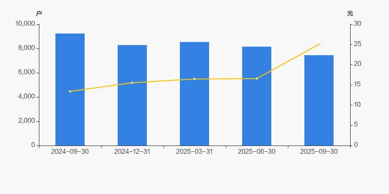 2024年9月30日至今,公司股东户数显著下降,区间跌幅为19.33%。2024年9月30日至2025年9月30日区间股价上涨86.79%。
