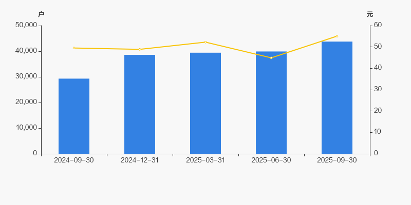 2024年9月30日至今,公司股东户数显著增长,区间涨幅为49.33%。2024年9月30日至2025年9月30日区间股价上涨11.22%。