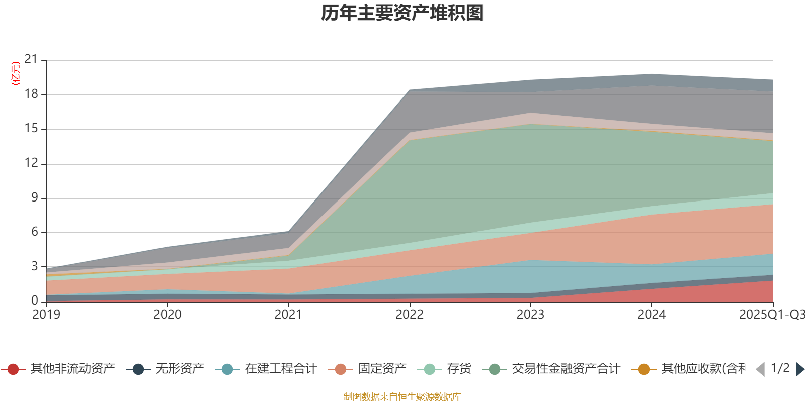 资产重大变化方面,截至2025年三季度末,公司交易性金融资产合计较上年末减少29.88%,占公司总资产比重下降9.17个百分点;其他非流动资产较上年末增加67.12%,占公司总资产比重上升3.9个百分点;货币资金较上年末增加8.89%,占公司总资产比重上升1.97个百分点;在建工程合计较上年末增加13.53%,占公司总资产比重上升1.35个百分点。