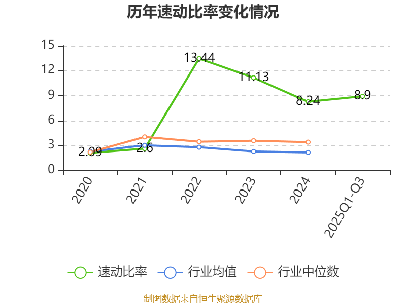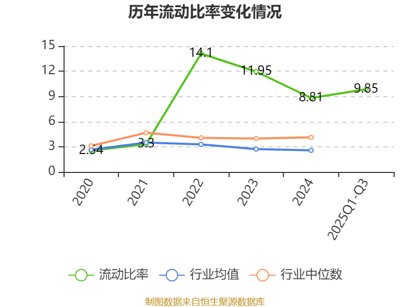 2025年前三季度,公司流动比率为9.85,速动比率为8.9。