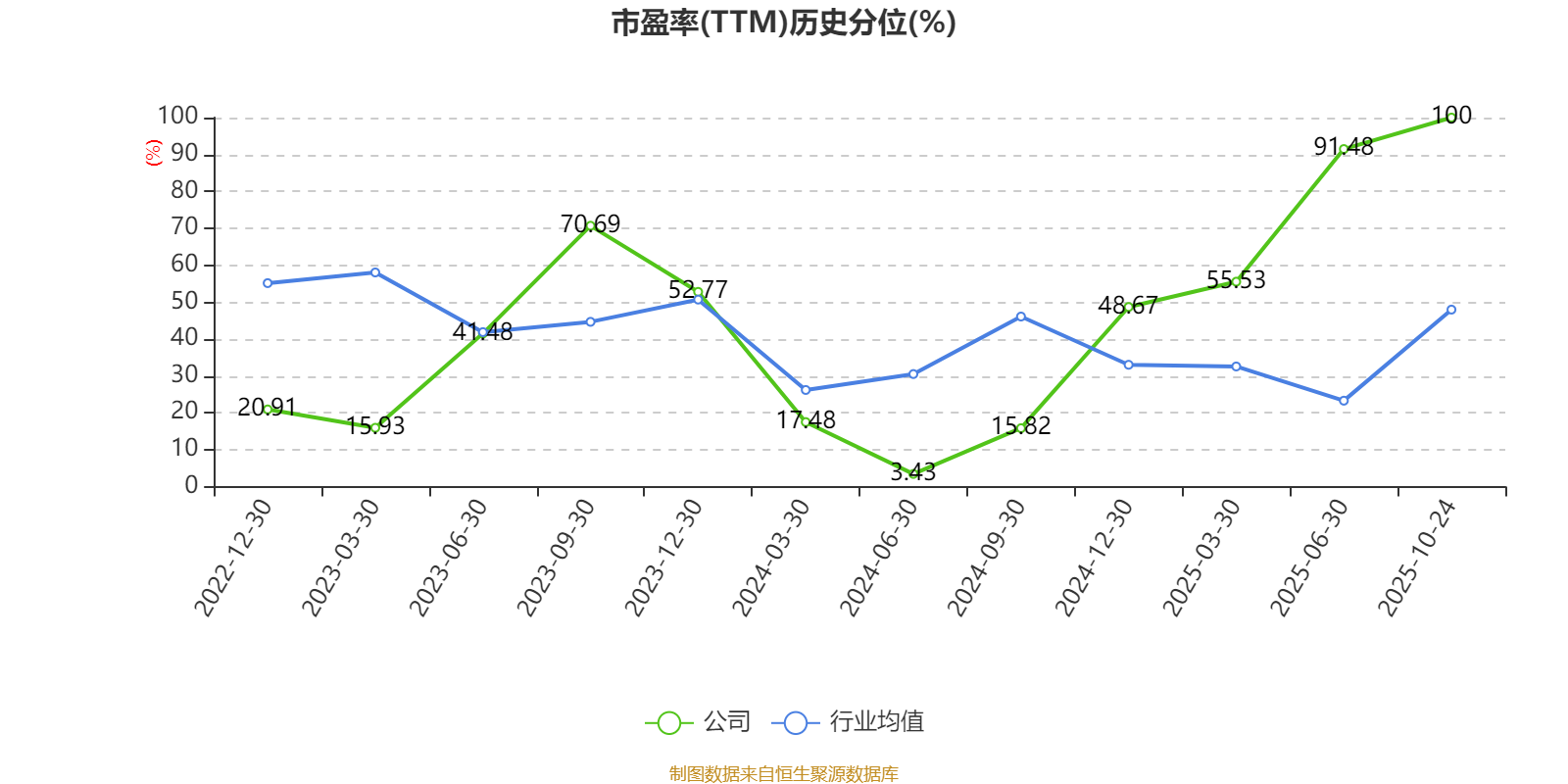 市盈率、市净率为负时,不显示当期分位数,会导致折线图中断。