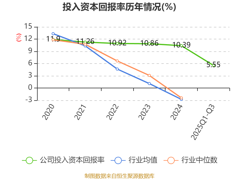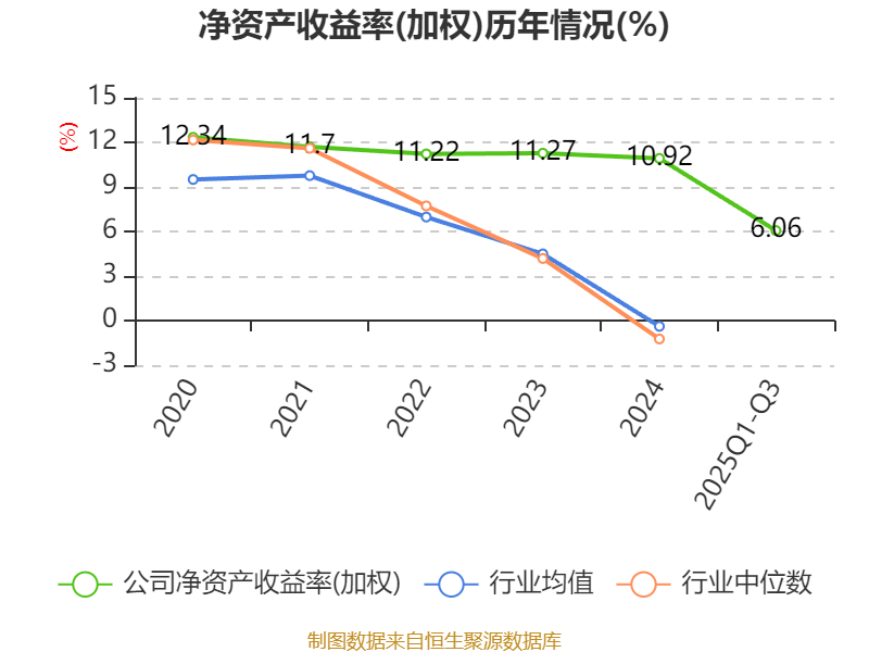 盈利能力方面, 2025年前三季度公司加权平均净资产收益率为6.06%,同比下降0.45个百分点。公司2025年前三季度投入资本回报率为5.55%,较上年同期下降0.59个百分点。