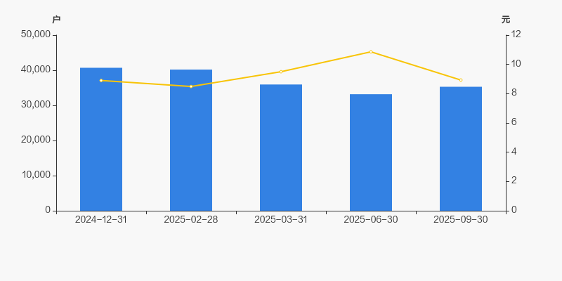 截至2025年9月30日,公司最新A股总股本为34.75亿股,其中流通股本为18.79亿股。户均持有流通股数量由上期的5.66万股下降至5.32万股,户均流通市值47.55万元。