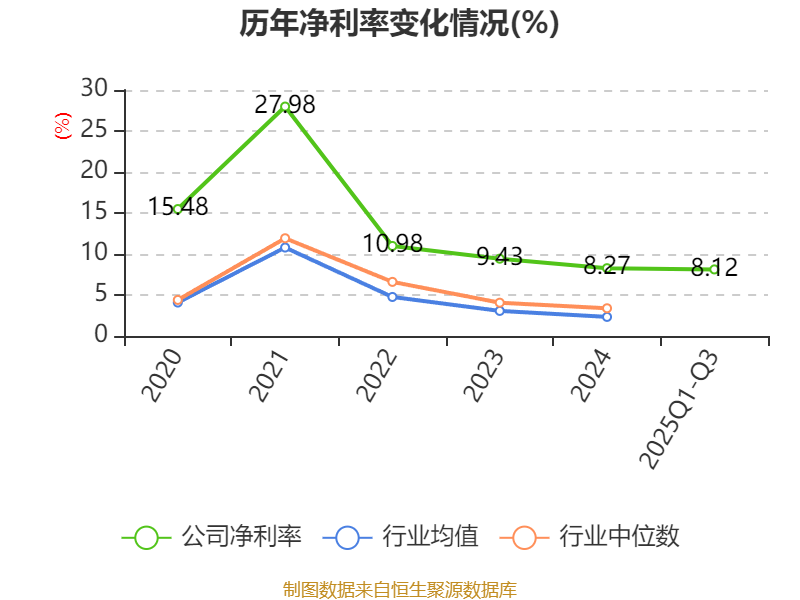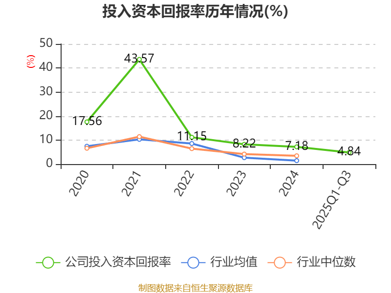 盈利能力方面, 2025年前三季度公司加权平均净资产收益率为5.46%,同比下降2.38个百分点。公司2025年前三季度投入资本回报率为4.84%,较上年同期下降1.65个百分点。