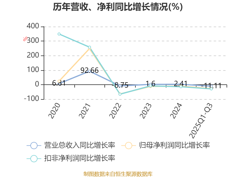 负债重大变化方面,截至2025年三季度末,公司应付票据及应付账款较上年末增加29.72%,占公司总资产比重上升3.12个百分点;短期借款较上年末减少29.61%,占公司总资产比重下降2.45个百分点;其他应付款(含利息和股利)较上年末增加1067.76%,占公司总资产比重上升0.68个百分点;应付职工薪酬较上年末减少26.43%,占公司总资产比重下降0.3个百分点。