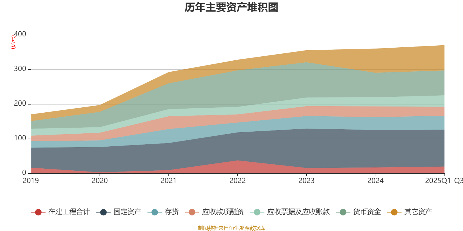资产重大变化方面,截至2025年三季度末,公司债权投资较上年末减少75.33%,占公司总资产比重下降3.79个百分点;一年内到期的非流动资产占公司总资产的3.74%,上年末为0;应收票据及应收账款较上年末增加25.46%,占公司总资产比重上升1.62个百分点;应收款项融资较上年末减少14.94%,占公司总资产比重下降1.48个百分点。