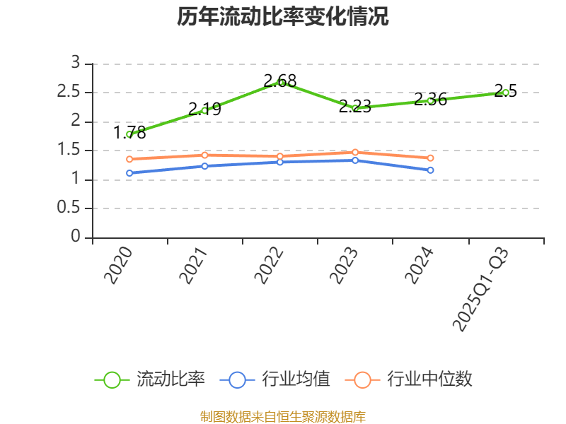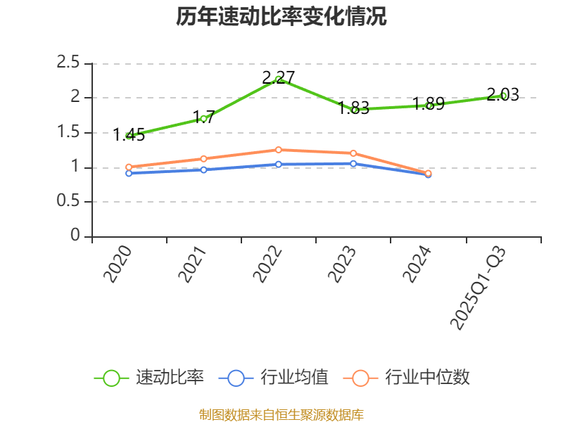 2025年前三季度,公司流动比率为2.5,速动比率为2.03。