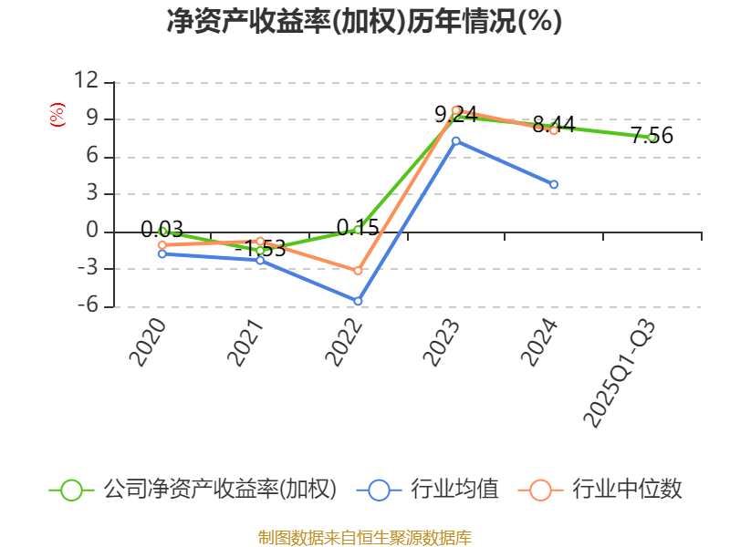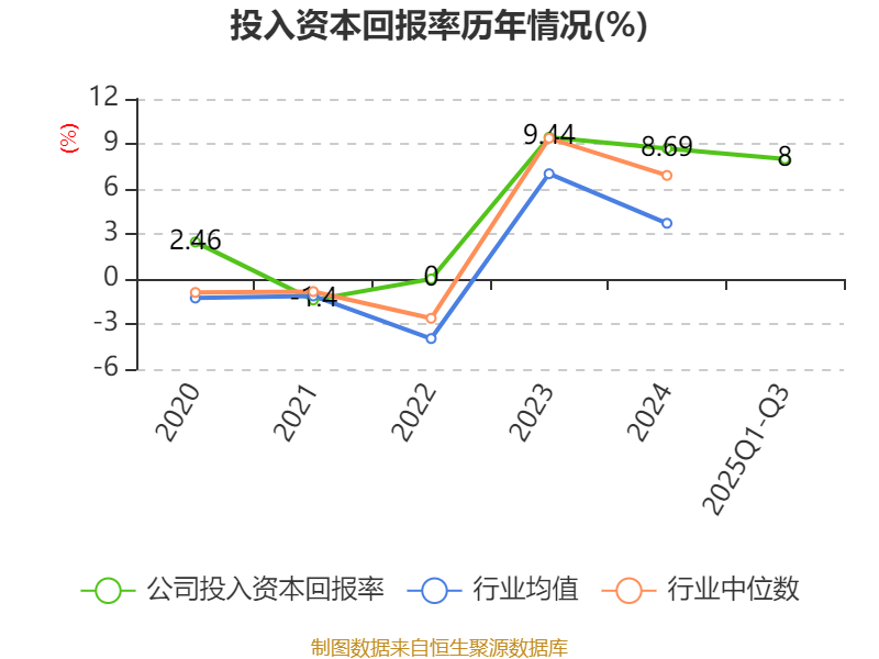盈利能力方面, 2025年前三季度公司加权平均净资产收益率为7.56%,同比上升0.17个百分点。公司2025年前三季度投入资本回报率为8%,较上年同期下降0.16个百分点。