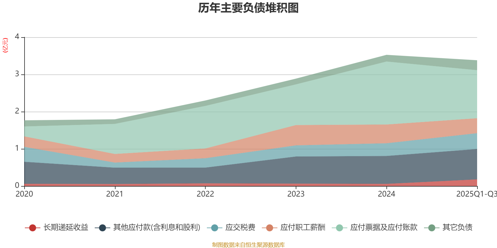 负债重大变化方面,截至2025年三季度末,公司应付票据及应付账款较上年末减少23.68%,占公司总资产比重下降1.47个百分点;应付职工薪酬较上年末减少20.52%,占公司总资产比重下降0.39个百分点;长期递延收益较上年末增加212.24%,占公司总资产比重上升0.38个百分点;合同负债较上年末增加127.45%,占公司总资产比重上升0.24个百分点。