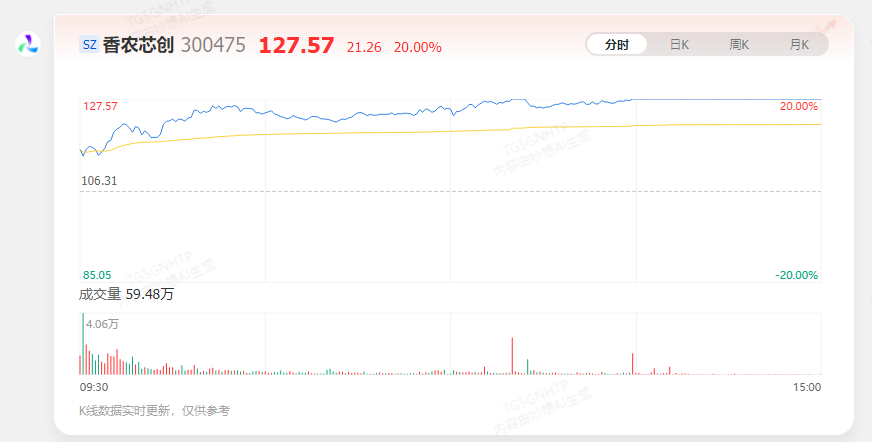 今日收盘香农芯创20CM涨停,可能有以下几个原因: