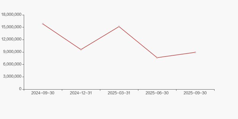 2024年9月30日至今,公司股东户数显著增长,区间涨幅为48.55%。2024年9月30日至2025年9月30日区间股价上涨1.22%。