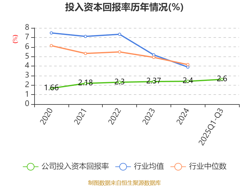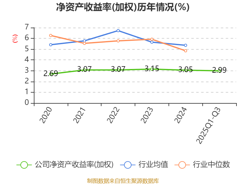 盈利能力方面, 2025年前三季度公司加权平均净资产收益率为2.99%,同比上升0.05个百分点。公司2025年前三季度投入资本回报率为2.6%,较上年同期上升0.18个百分点。