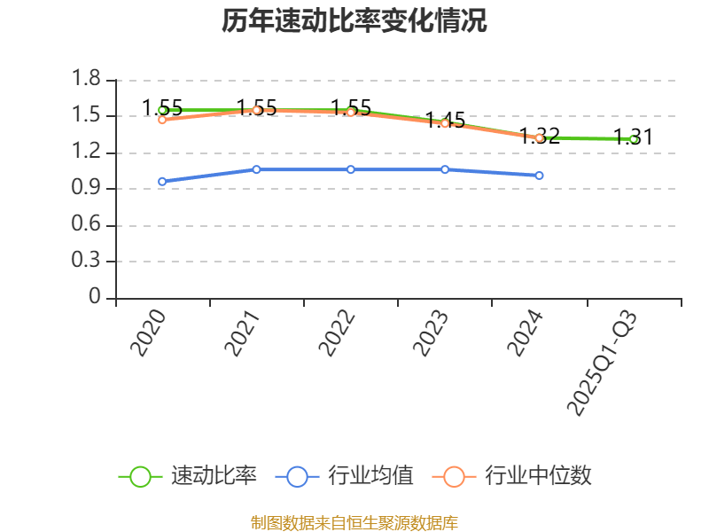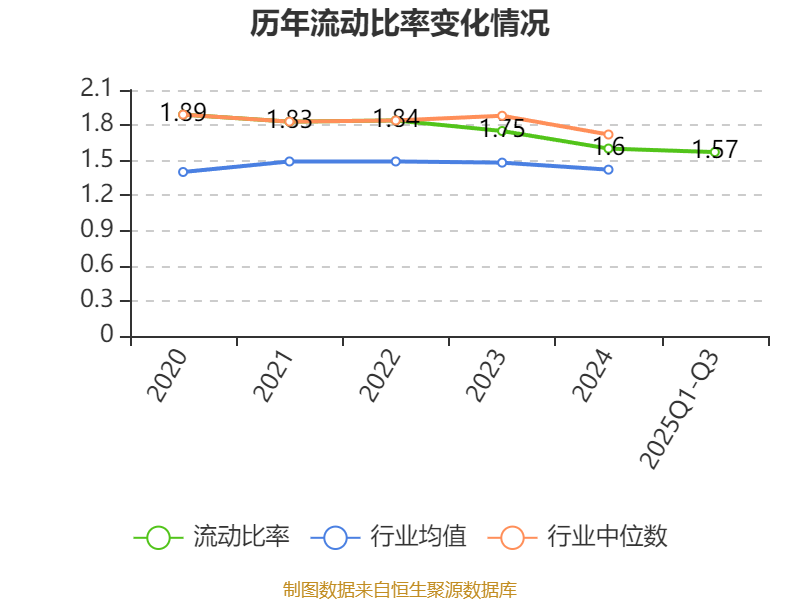 2025年前三季度,公司流动比率为1.57,速动比率为1.31。