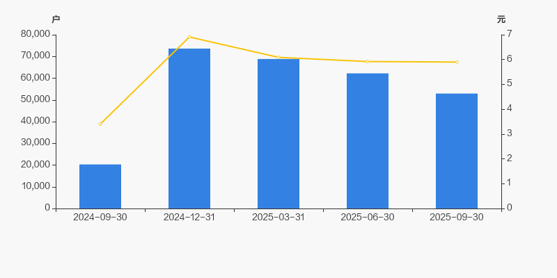 截至2025年9月30日,公司最新总股本为8.7亿股,其中流通股本为8.69亿股。户均持有流通股数量由上期的1.4万股上升至1.64万股,户均流通市值9.69万元。