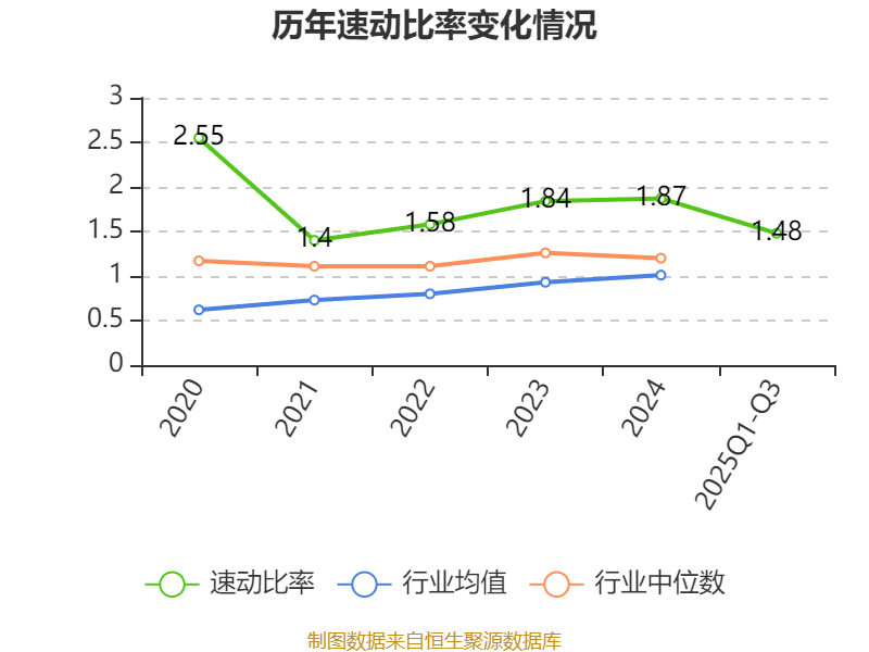 2025年前三季度,公司流动比率为2.1,速动比率为1.48。