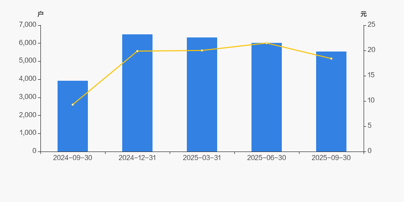 截至2025年9月30日,公司最新总股本为1.02亿股,其中流通股本为5591.72万股。户均持有流通股数量由上期的9284股上升至1.01万股,户均流通市值18.56万元。