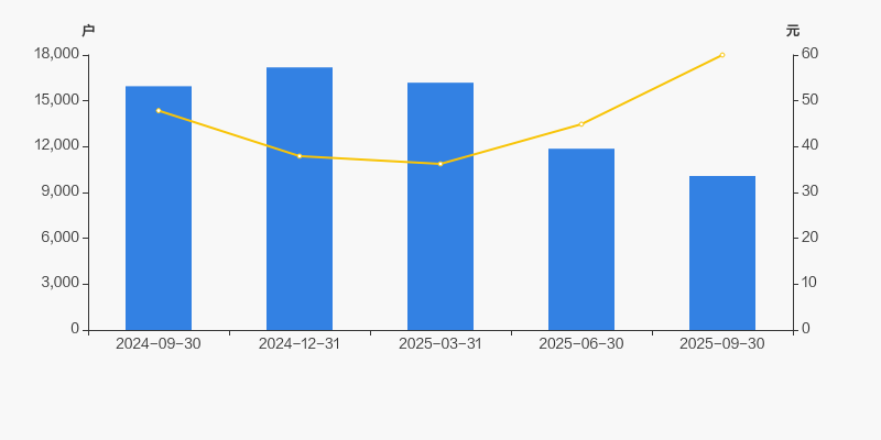 自2024年12月31日以来,公司股东户数连续3期下降,截至目前减幅为41.35%。2024年12月31日至2025年9月30日区间股价上涨58.14%。