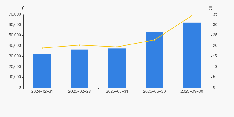 截至2025年9月30日,公司最新总股本为6.49亿股,其中流通股本为6.38亿股。户均持有流通股数量由上期的1.2万股下降至1.02万股,户均流通市值35.19万元。