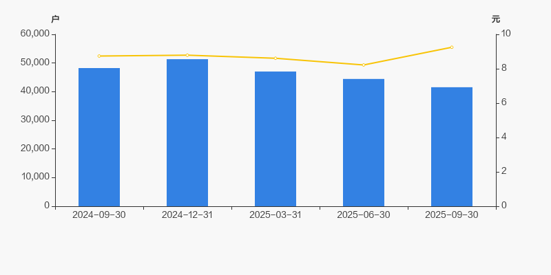 截至2025年9月30日,公司最新总股本为5亿股,且均为流通股。户均持有流通股数量由上期的1.13万股上升至1.2万股,户均流通市值11.13万元。