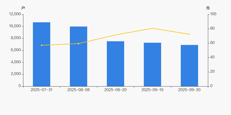 2025年7月31日至今,公司股东户数显著下降,区间跌幅为35.41%。2025年7月31日至2025年9月30日区间股价上涨26.83%。