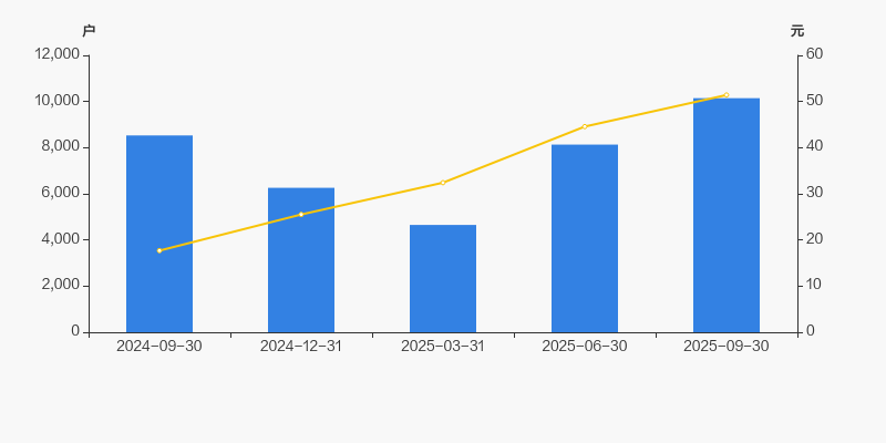 截至2025年9月30日,公司最新总股本为1.16亿股,其中流通股本为1.01亿股。户均持有流通股数量由上期的1.24万股下降至9974股,户均流通市值51.27万元。