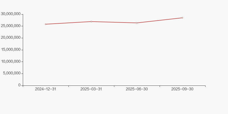 自2025年2月28日以来,公司股东户数连续3期上涨,截至目前增幅为18.68%。2025年2月28日至2025年9月30日区间股价上涨17.02%。