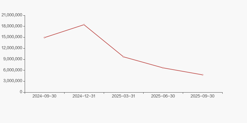 东方锆业2025年10月25日在三季度报告中披露,截至2025年9月30日公司股东户数为12.82万户,较上期(2025年6月30日)增加1.76万户,增幅达15.95%。
