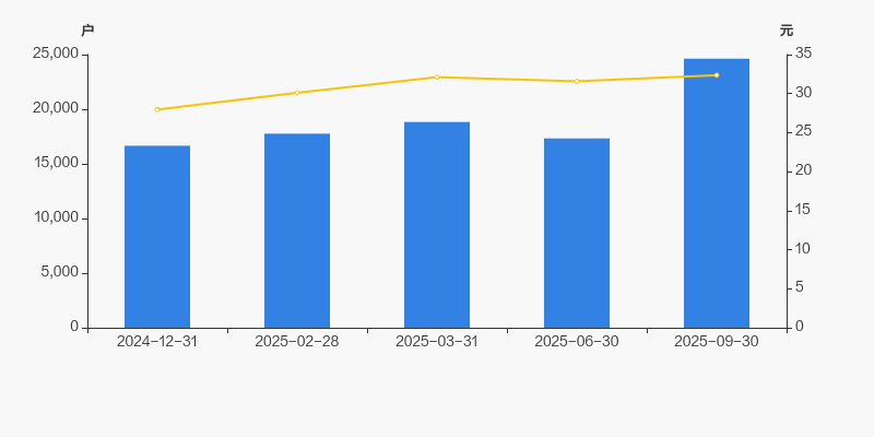 2024年12月31日至今,公司股东户数显著增长,区间涨幅为47.84%。2024年12月31日至2025年9月30日区间股价上涨15.73%。