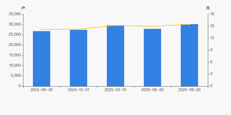 2024年9月30日至今,公司股东户数显著增长,区间涨幅为12.68%。2024年9月30日至2025年9月30日区间股价上涨8.97%。